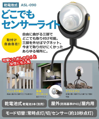 今まで取付けにくかったあらゆる場所に! 自由に曲がる三脚でどこでも取付けできるセンサーライトが登場しました。