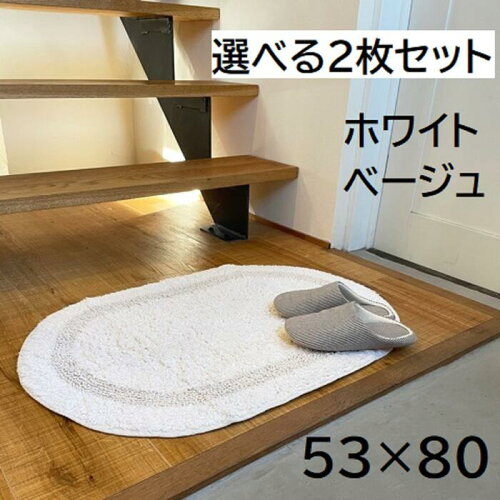 玄関マット 天然素材 楕円形 53×80 2枚セット ホワイト ベージュ コットン 綿100% 洗濯 洗える 風水 開運 室内 おしゃれ かわいい 白 北欧 送料無料 インド 玄関 風呂 バスマット 綿100 コットン100 母の日
